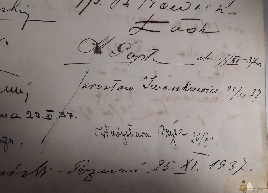 Przypominamy, że uroczyste otwarcie Muzeum Diecezjalnego w Domu Długosza miało miejsce 26 października 1937 r. Na fotografii wykonanej przed wejściem do nowej siedziby zbiorów diecezjalnych, fotograf Marian Kossowski z Sandomierza, uwiecznił biskupa Jana Kantego Lorka, ks. prałata Andrzeja Wyrzykowskiego, ks. prałata Edwarda Górskiego oraz Karola Estreichera jun. Na łamach „Ilustrowanego Kuriera Codziennego” [wydanie z 29 października 1937 r.] opublikowano tekst, w którym poinformowano, że w Sandomierzu odbyły się piękne uroczystości otwarcia Muzeum Diecezjalnego, na które zjechały się wielkie ilości osób.